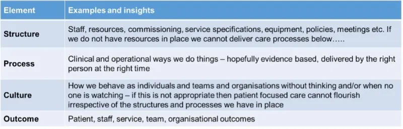 Back to basics: outcomes, structures, processes and culture