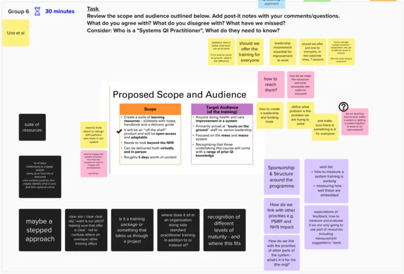 We’d like to involve as many subject matter experts in systems improvement as possible. Please use the MURAL board or let us know how you think you could best contribute at qi@nhselect.org.uk.