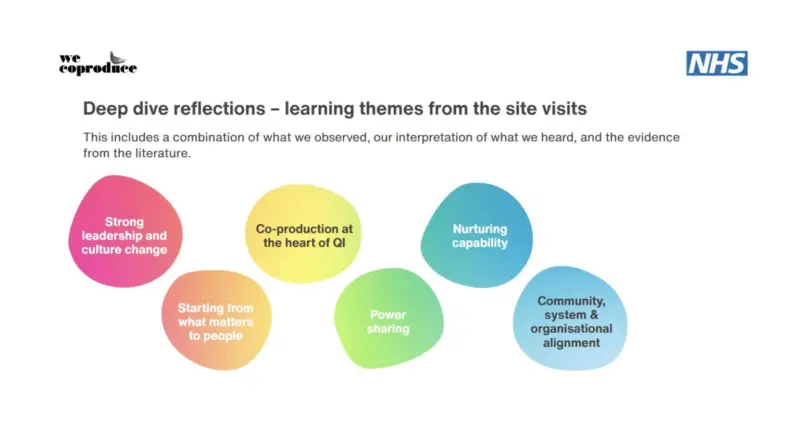 Pre-pandemic we began some work where we visited organisations a little further along the co-producing quality improvement journey to learn from them what others need to pay attention to. I have been working with colleagues from We Coproduce and NHS England’s Improvement and Experience of Care teams to use the learning from this work to produce a suite of materials.