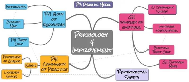 From the start, Psychology for Improvement (P4I) grounded itself in ‘co-production’, drawing on the ideas and resources across our community, with expertise shared by both improvers and psychological practitioners. To help our work flourish, we established three specific goals: